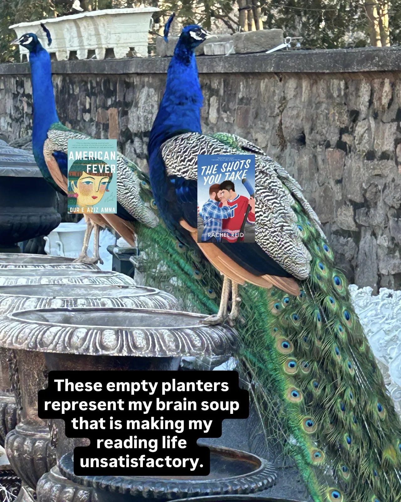 I am trying to know less, so I leaned into Read Across America Week and read whenever I could, however I could. This resulted in, perhaps, the zaniest reading behavior that I believe the youths would call “feral.” This feral reading had me cycling through three books at a time, almost like a reading version of The Floor Is Lava. Don’t touch the ground and don’t let the outside world pierce your reading time. My reading cycle is activity dependent and starts as soon as I get up from my desk with an audiobook while shoveling and kitchen prep time, then a physical book during kitchen downtime, and concludes with a reheated romance while half-watching tv after dinner/before bed. Rinse and repeat until the contents of my brain are analogous to The Dip from Who Framed Roger Rabbit? and nothing gets in and nothing gets out.